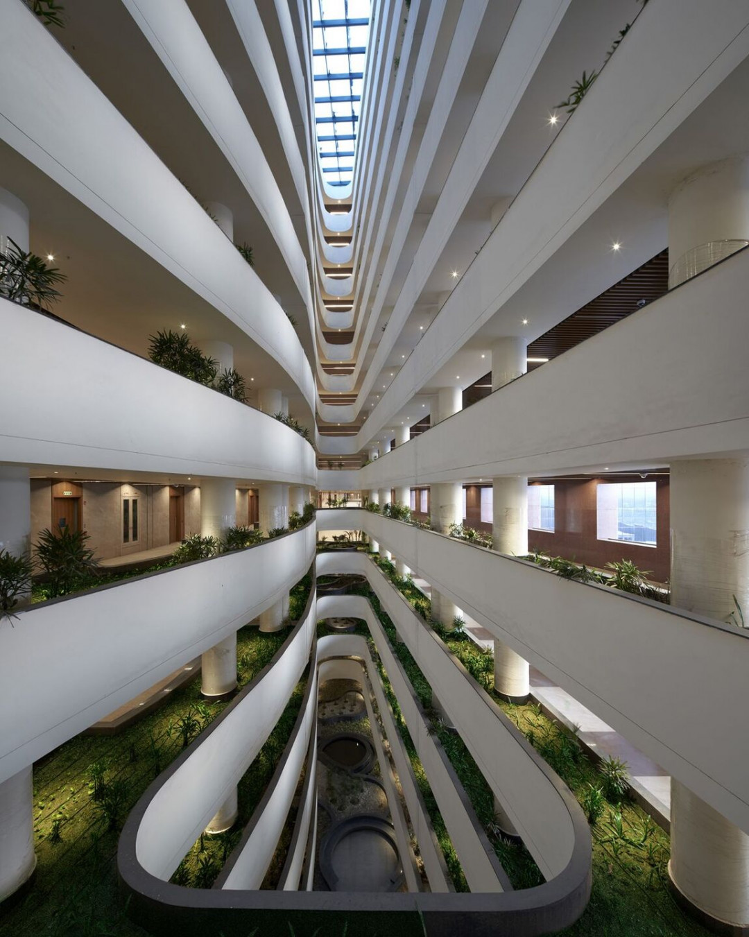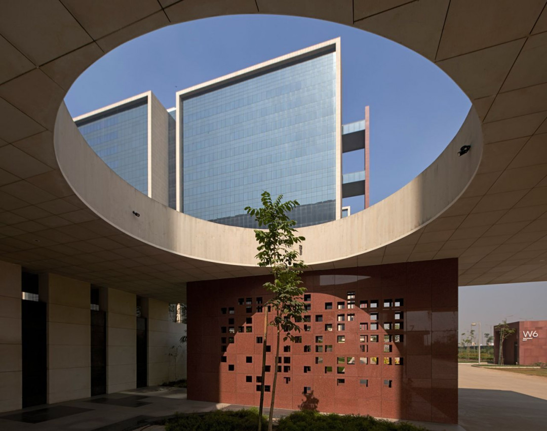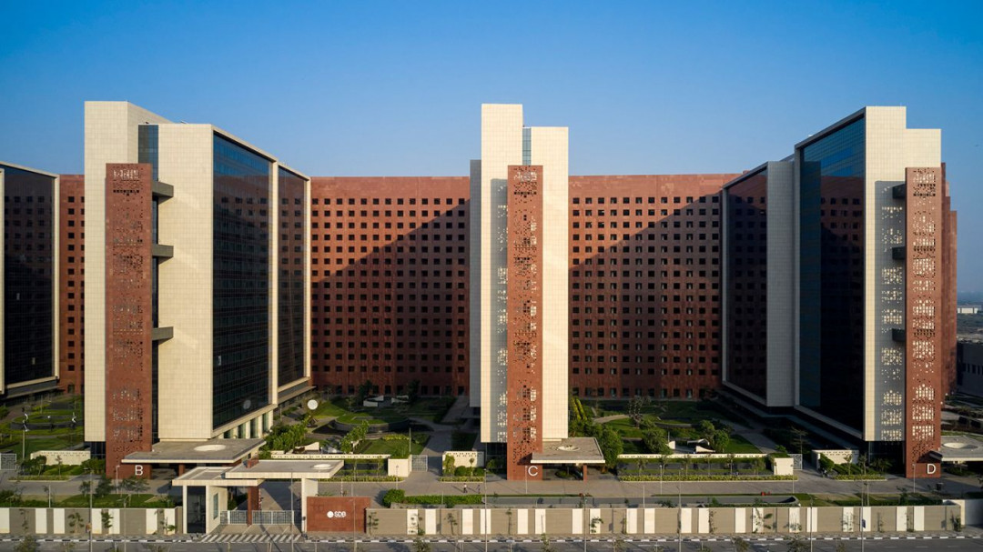 Uluslararası bir tasarım yarışmasının ardından Hintli mimarlık firması Morphogenesis tarafından tasarlanan Hindistan'ın Surat kentindeki sürdürülebilir mimari Surat Diamond Bourse, 660.000 m2'lik taban alanıyla dünyanın en büyük ofis binası olma özelliğine sahip bir elmas ticaret merkezi. 35 dönümlük bir arazi üzerine inşa edilen 15 katlı kompleks, kule katları arasındaki bağlantıyı sağlayan merkezi bir 'omurga'dan yayılan ve bu omurga ile birbirine bağlanan dokuz dikdörtgen yapıdan oluşuyor.