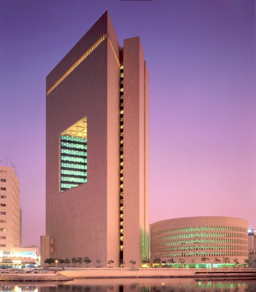 Cidde'deki National Commercial Bank'tan ilham alınabilir. SOM'da çalışan Gordon Bunshaft tarafından tasarlandı. Sert çöl güneşine ayak uydurmak için cam bir avluya ve sağlam bir taş dış duvara sahiptir.