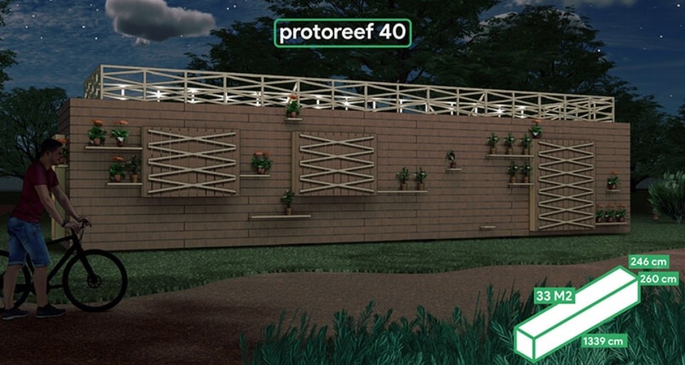 İkili şu anda dört temel modeli hayata geçiriyor; resif 20, resif 40, ikiz 40/20 ve protoresif 4. Ticari kullanımla sınırlı olan bu modüller bir ile dört gün arasında kurulabilir ve sıhhi tesisat, elektrik ve LED sistemleriyle birlikte gelir. İsteğe bağlı hizmetler arasında dış kaplamaları, kapıları ve pencereleri, iç döşeme ve güvenli kapatmayı içerir.