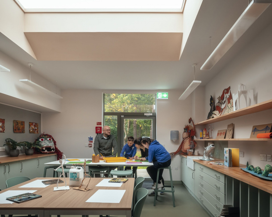 Yeni Öğrenme Merkezi, Trust'ın II. derece listesindeki mevcut ilkokul binasına bitişik. Açık hava öğrenme tesisi olarak kullanılan geçici bir yapının yerini almış. Öğrenme Merkezi'nde ahşap ve bisiklet atölyeleri, terapi odaları, bir sanat sınıfı ve personel tesisleri bulunuyor. Refaha odaklanan öğrenme alanları, kapsamlı öğrenme sunmak için doğrudan dış mekana açılıyor; üstten camlı bölümler doğayla daha fazla bağlantı sağlıyor.
