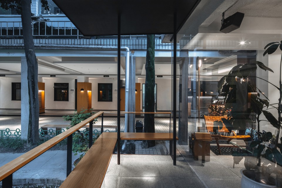 Çeşitli taş döşeli bahçe peyzajı ve yol boyu bitkilere bakıldığında, avluda "hareketli görüntüler" sağlayan bir düğümler oluşturmaktadır. İnsanların paylaşabileceği, iletişim kurabileceği ve hatta sevebileceği bir mekan haline dönen avlu çağdaş bahçe biçimi ve ortak ofis kullanımları için bir kamu hizmeti olarak faaliyet göstermekte.