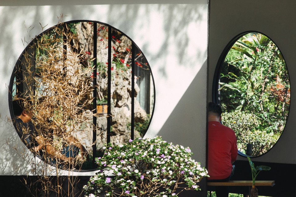 Bahçedeki yolu izleyen temel tasarım öğesi veranda, otelin merkezinde bir çay evine dönüşürken aynı zamanda eski kanopiler yolun başlangıç ve bitiş noktasındaki çay evini bir halka içine alarak taş bahçeye doğru uzamasını sağlamakta. Veranda bahçedeki taşlar ve bitkiler uygun yoğunluklu kullanımlarıyla hassas köşelerle dolu bir peyzaj yaratmakta.