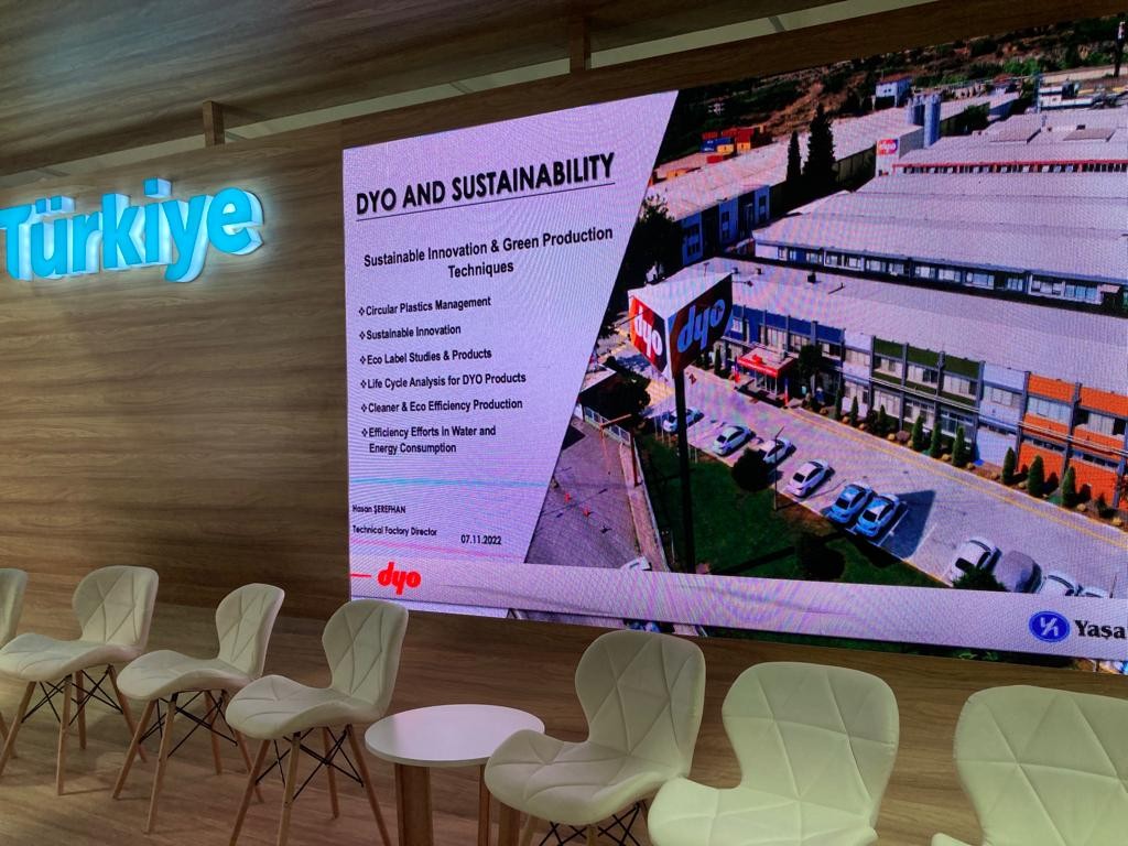 T.C. Çevre, Şehircilik ve İklim Değişikliği Bakanlığı tarafından konuşmacı olarak davet edilen 3 firmadan biri olan DYO Boya’yı temsilen katılan DYO Boya Fabrikaları İnşaat Boyaları Teknik Fabrika Direktörü Hasan Şerefhan, yaklaşık 190 ülkeden 40 binin üzerinde katılımcının, 100’den fazla devlet liderinin ve politika yapıcının katılımının beklendiği COP’27’de "Türk Sanayisinde Temiz Üretim Çalışmaları" başlıklı etkinlikte konuşmacı olarak yer aldı.