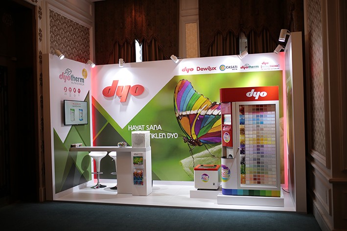 DYO Boya Fabrikaları Pazarlama Direktörü Melek Soklangıç Dinçer, Teknik Servis ve DYO Akademi Müdürü Pınar Şimşek ile Yalıtım ve Direkt Satışlar Müdürü Hakan Yılmaz geçen yıl "yalıtım 4.0" sloganı ile lanse edilen DYO'nun çevreci yalıtım markası DYOTHERM hakkında stantta katılımcıları bilgilendirdiler. Ayrıca ziyaretçilere "DYO Renk Pınarı Makinesi"nde hazırlanan numune boyalar da hediye edildi.