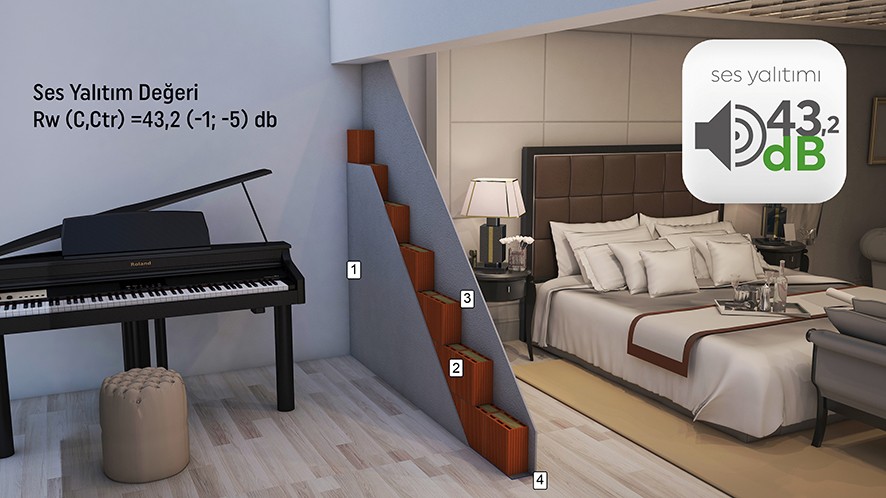1- Kaba Sıva, 2- Ekoklinker 12, 3- Kaba Sıva, 4- DKM Fonostrip Akustik Şerit
