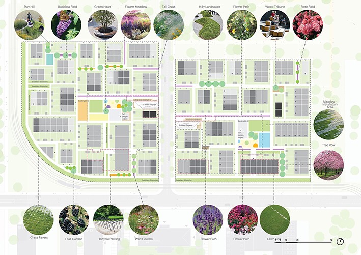 - 3) Parklar için seçilen bitki türleri, mahalleyi biyolojik olarak çeşitlendiriyor. Farklı konut türleri, birçok farklı bahçe stili için fırsatlar yaratarak, sakinlerin kendilerine ait sebze bahçelerinden çocuklar için tasarlanan oyun alanlarına kadar, kendilerine uygun açık hava yaşam tarzını seçmelerine olanak tanıyor.