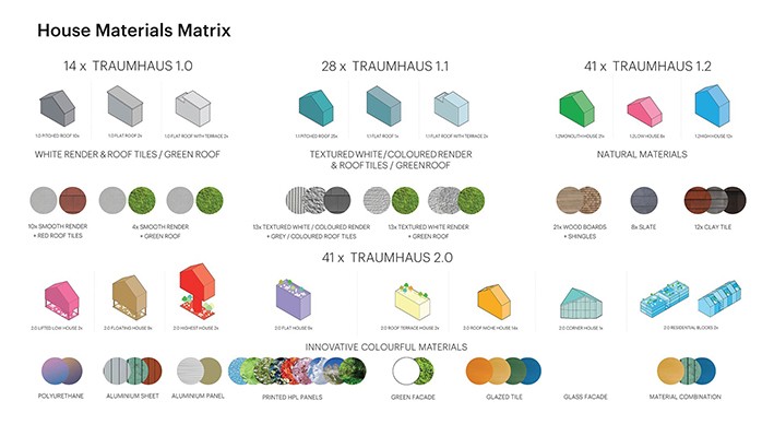 Traumhaus'un bu orijinal tasarımında; çeşitli malzemeler, boyutlar, iç mekân tasarımları ve her biri çeşitli seçenekler sunan dış bağlantılar bulunur. Ekip, projeyi tasarlarken belirli bir sınıfa hizmet vermiyor; tam tersiz her bütçeyi ve demografiyi düşünen bir kurgu yaratmaya özen gösteriyorlar. Her parametreyi en ince ayrıntısına kadar düşünen ekip, kullanıcılara seçim kolaylığı açısından büyük bir katalog oluşturuyor.