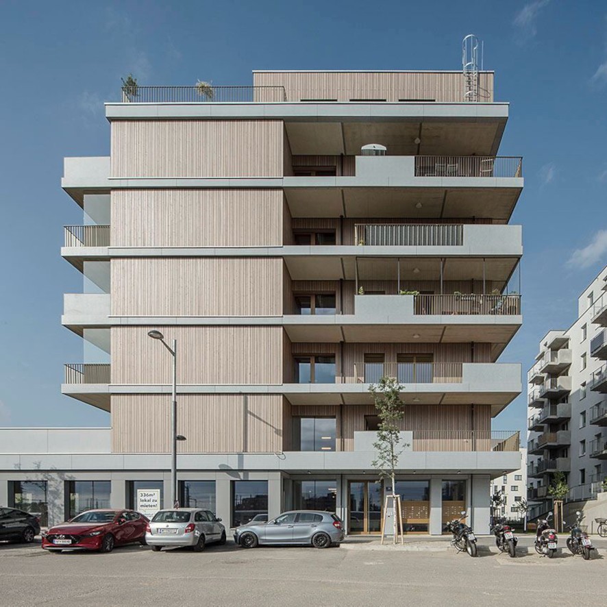 Einszueins Architektur'un sunduğu Das Gesundheits Quartier (GeQ) , ekolojik ve sağlıklı şehir için bir yapı taşı. Ahşap-beton hibrit yapı, Viyana'nın merkezinde, ana tren istasyonuna ve güneybatıdaki Helmut-Zilk-Park'a yakın sürdürülebilir bir yaşam alanı sağlıyor.