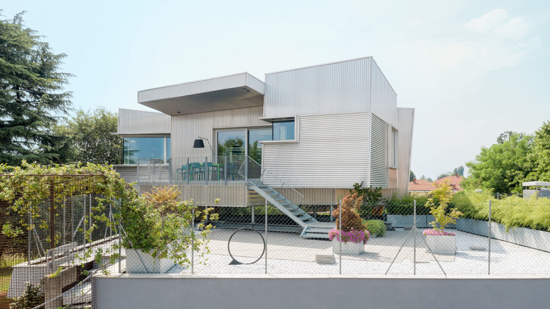 Torino Büyükşehir Belediyesi'ne bağlı bir İtalyan komünü olan Cambiano'da, ELASTICOFarm'dan mimar Stefano Pujatti gerçekten kendine özgü bir konut oluşturdu. "The Hole with the House Around", özel bir parkın içinde yer alan 1970'lerden kalma mevcut bir konut binasının yenilenmesi ve genişletilmesinden oluşuyor. Yeni konut, özgün konutun üzerinde yükselen bir dizi küp benzeri hacimden oluşuyor. Sarı çatallı metal sütunlar üzerinde yükselen hacimler, merkezi bir dörtgen boşluğun etrafında toplanıyor.