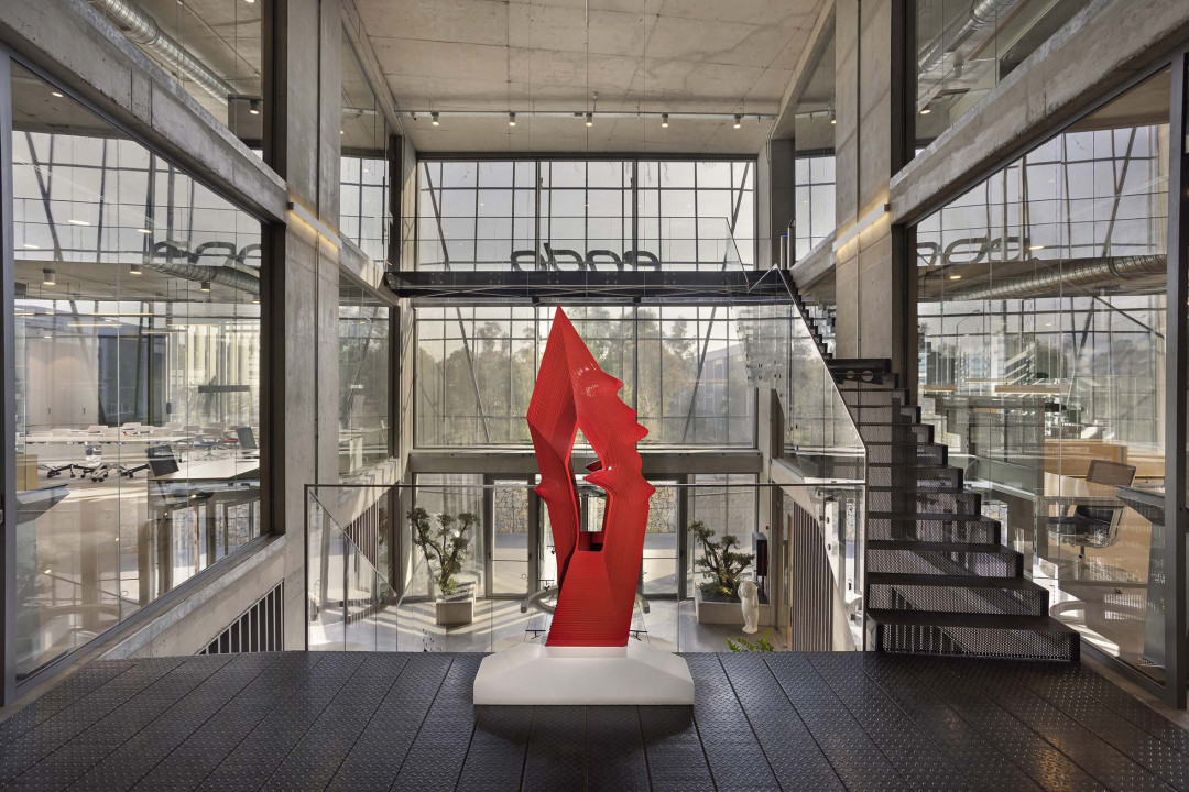 Cephe tasarımında endüstriyel bir tarz benimsenirken, geniş cam açıklıklarından gelen güneş ısısını kontrol etmek amacıyla hareketli güneş kırıcılar ve batı cephesinde mesh bir koruma yüzeyi kullanılmıştır. Cephede bitki yerleşimi de bu konuda önemli bir rol oynamıştır. İç mimari tasarımda ise endüstriyel, bakımı kolay ve kullanışlı bir alan oluşturmanın yanı sıra renklerle daha eğlenceli bir ortam yaratılmak istenmiştir. Her alanın kendi rengi oluşturulmuş ve çalışanların odalara bölünmek yerine açık alanlarda ve samimi bir ortamda çalışmaları sağlanmıştır. Müşterinin kendi dinamik tarzı, krom parçalar ve otomasyon kullanımı gibi detaylar, genç ve dinamik bir ekibe hitap eden dinamik bir tasarım için ilham kaynağı olmuştur.