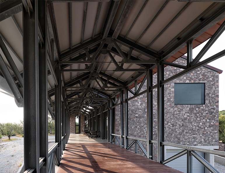 Beton, galvaniz çelik ve doğal taşların tercih edilmesinin bir başka sebebi ise açıkta kalan yapının bakım gerektirmeden korumasının sürdürülebilir olması idi. Projenin kamusal alanı olarak bilinen dükkan ve üretim alanından özel alan olan konuk evine geçişi kademeli bir saha planıyla gerçekleştirilmiş.