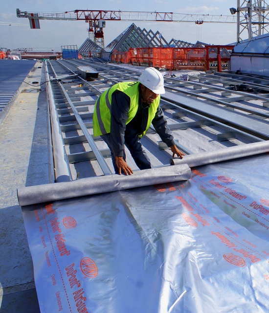 Sıcak havayı binanın içinde tutmaya yardımcı olan hava ve buhar kontrol katmanı DuPont™ AirGuard® , havayı tutup su buharının su yalıtım örtüsünden geçmesine izin veriyor, hava geçirmeyen ancak buhar geçişi sağlayan yapısı ile yoğuşmayı önlüyor.