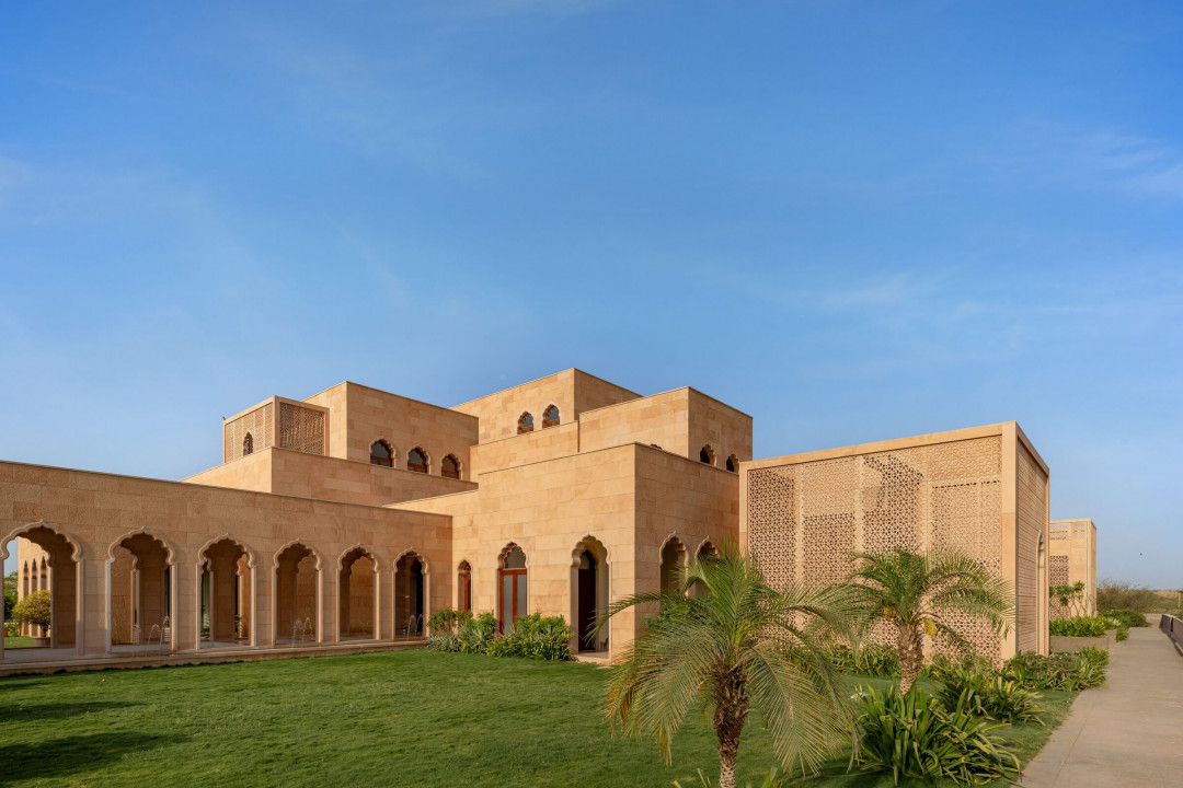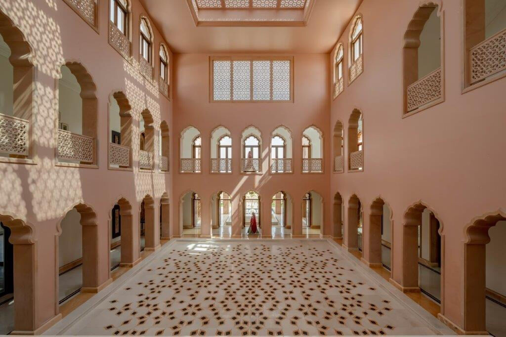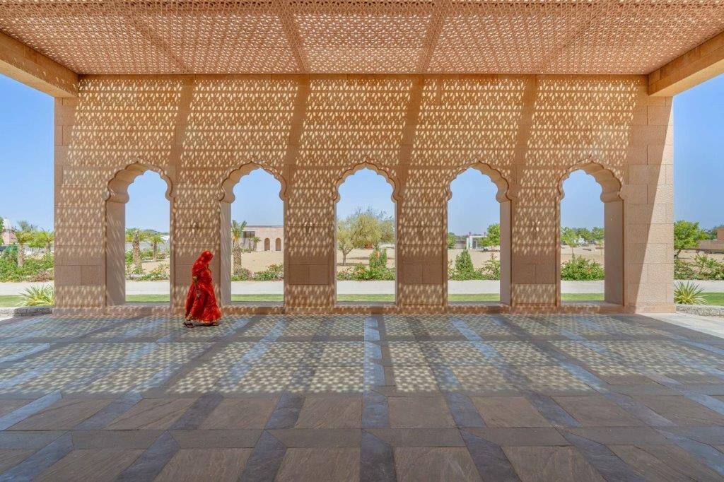 Müşterinin dört kuşak aile üyelerini barındırma isteğini yerine getirmek üzere tasarlanan bu etkileyici konut (yaklaşık 3.345 m² - 36.006 fit kare brüt taban alanına sahip) dokuz yatak odasına, bir dizi çok işlevli yaşam alanına ve açık alanlara sahip - evin yüzde 40'ından fazlası açık avlulardan, dolaşım alanlarından ve korunaklı açık verandalardan oluşuyor. Ev bütünüyle, ayrı ayrı eklemlenmiş hacimlerin bir bileşimi olarak algılanabilir. Sanjay Puri Architects, her yaşam alanını delikli taş panellerle perdelenmiş korunaklı bir açık alanla birleştirdi. Stüdyo, “Bu perdeler ısı kazanımını azaltmanın yanı sıra, iç mekanları bölgede yaygın olan kum fırtınalarından da koruyor.” dedi.