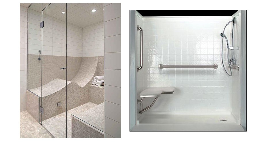 Duş, birçok insanın, özellikle hareketliliğinin sınırlı olduğu insanlar için erişilemeyen bir alan olabilir.Yardımcı tutunma dayanakları ve duş alanının oturabilecek şekilde tasarlanması erişilebilir tasarıma entegre olmasını sağlar.