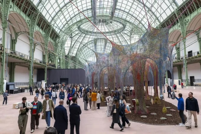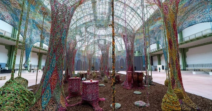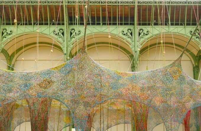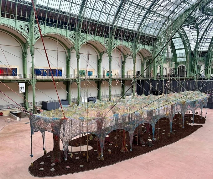 Paris’in tarihi Grand Palais binasında, Brezilyalı sanatçı Ernesto Neto tarafından hayata geçirilen “Nosso Barco Tambor Terra” yerleştirmesi, geleneksel el işçiliğini gözler önüne seriyor. Bu devasa el dokuması çalışma, sadece mekânı değil, ziyaretçilerin hareket etme, nefes alma ve bağ kurma biçimlerini de dönüştürüyor.