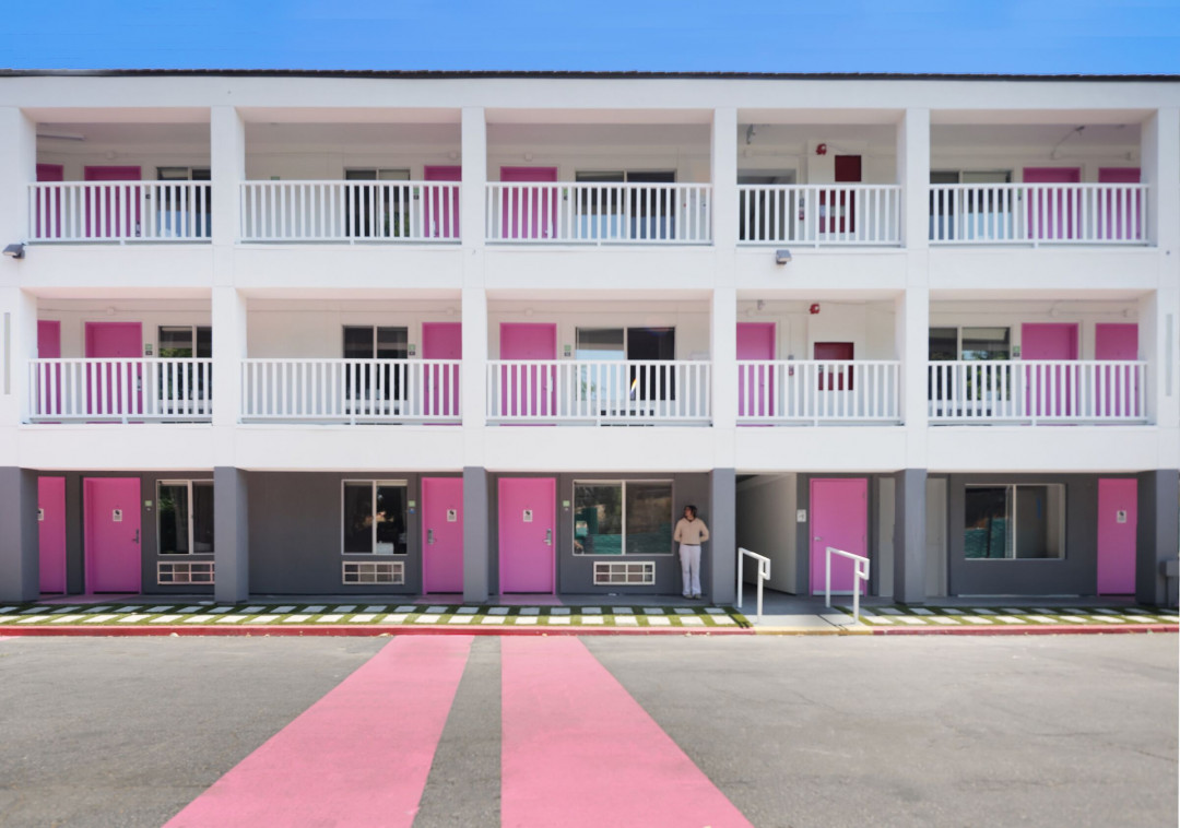 Los Angeles merkezli Kadre Architects, San Fernando Vadisi'ndeki harap bir motel kompleksini, başta bekar anneler olmak üzere evsiz aileler için renkli ve sıcak bir konut alanına dönüştürdü. Eski Woodland Hills moteli artık evsizlik yaşayan aileler için yüz adet geçici barınma birimi sağlıyor. Sürdürülebilir mimari proje Los Angeles merkezli hayır kurumu "Hope the Mission" ve Los Angeles County ile iş birliği içinde yürütülüyor.