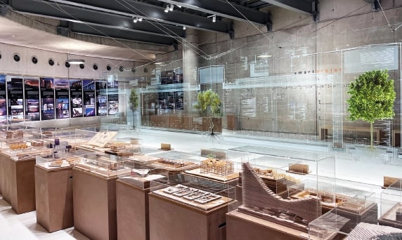 Biz bir projeye ve mimari üretime obje bazlı bakmamaya çalışıyoruz. Mimari etkinin peşinde olmadan, doğru ilişki biçimleri ve sistemler kurmaya çalışarak sürecini de tasarlayarak üretiyoruz bir projeyi. “Esnek Sistem Tasarımı” olarak adlandırdığımız proje üretim biçimimizi bilgi bazlı yapabilmenin arayışındayız. “In search of Smart Project” bu doğrultudaki araştırmalarımızı derlediğimiz bir bilgi kütüphanesi ve platformu. Sergide yer alan 1:5 ölçekli cam üzerine baskı sistem kesitinde bu arayışımızı yansıtmaya çalıştık. “Derin Kesit” olarak tanımladığımız bu çizimde, bir projedeki elemanların detaylı bilgisini birkaç ileri seviyede derinleştirerek yer verdik .Proje panoları, proje maketleri, 12 m 2.5 m cam üzeri baskı sistem kesiti ve Smart Project bölümlerinden oluşan sergimizde Yazgan’ın dününü, bugününü ve geleceğe dönük yönünü anlatmaya, sunmaya çalıştık.