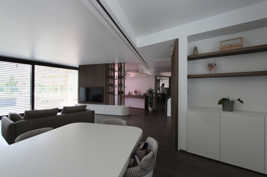 Mimar, benzersiz bina şeklini elde etmek için 3D modelleme yazılımını ve serbest çizimleri birleştirdi. Modern tasarımı ve organik bir renk paletini vurgulayan her iki ev de minimalizmi, temiz çizgileri ve ahşap aksanları birleştiriyor.