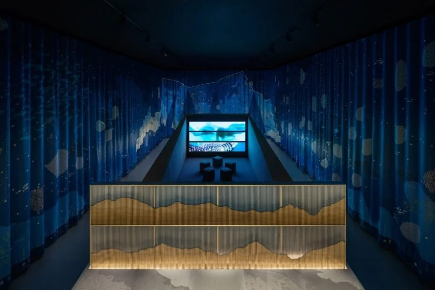 Sergi 12 farklı bölümden oluşuyor. Merkezde yer alan sinema odası, mimarlık stüdyosu Inside Outside iş birliğiyle tasarlanmış. Bu alanda yer alan kumaş duvarlara “Sea Curtain” (Deniz Perdesi) adı verildi. Üzerindeki desenler, Katar’ı çevreleyen deniz sınırlarını soyut bir şekilde temsil ediyor ve doğa-insan ilişkisini vurguluyor.