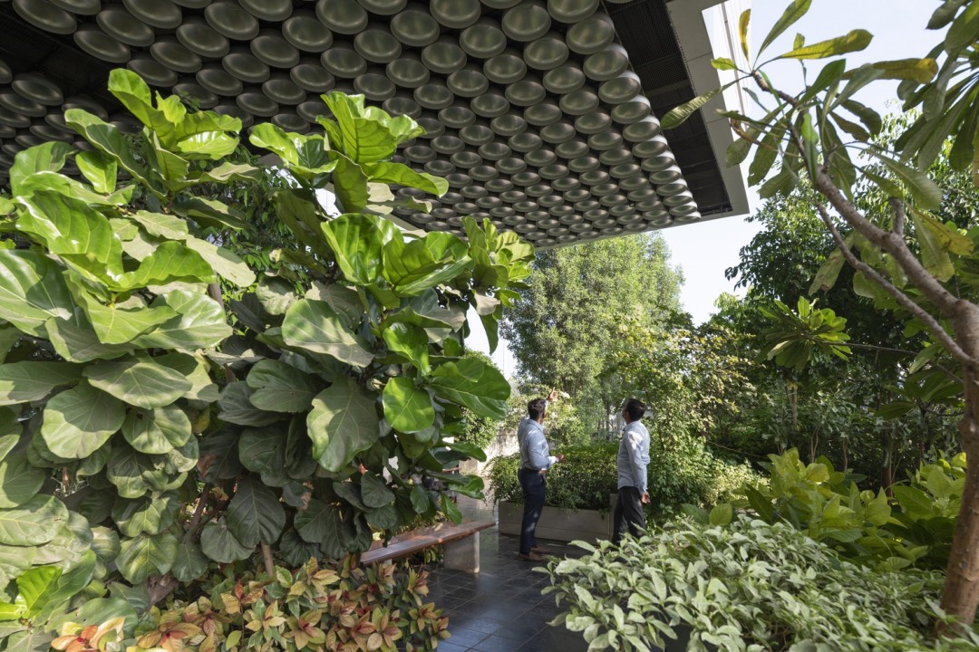 Bina her tarafında su ve enerji kullanımını en aza indirecek şekilde tasarlanmış. Çok sayıda önlem arasında gün ışığına izin verirken ve parlamayı kontrol ederken mekanik soğutmayı sınırlamak için gölgeleme stratejileri kapsamlı bir şekilde uygulanmış. Ayrıca rüzgar kulesi destekli havalandırma, ana alanları soğutur.