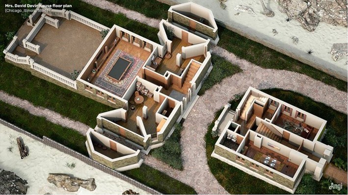 Angi ekibi, bu proje için Neomam stüdyoları ile birlikte çalıştı. Bu ekip, her ev için bir dış görünüm ve 3D ayrıntılı kat planı üreterek üç Frank Lloyd evini hayata geçirdi.