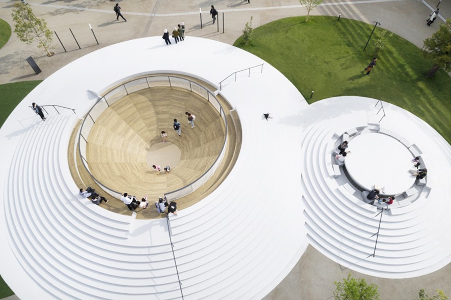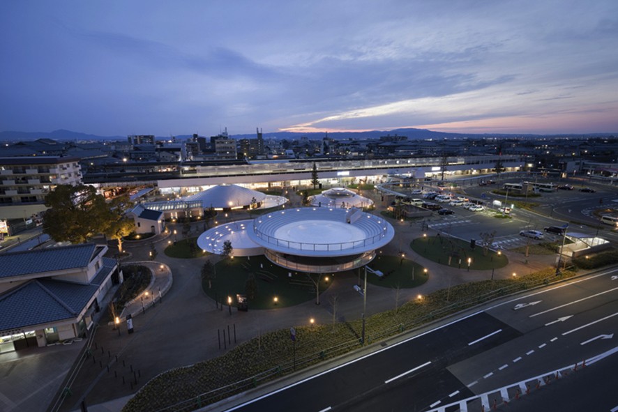 Japonya da eski Japon mezarlarından esinlenen fütüristik bir kamusal alan tasarlandı. Japonya'nın Nara eyaletindeki Tenri İstasyonunda bulunan çok amaçlı kamusal alan, bisiklet kiralama, kafeterya ve oyun alanı gibi olanaklar içeren 6.000 metrekarelik alan üzerinde kurulmuştur.