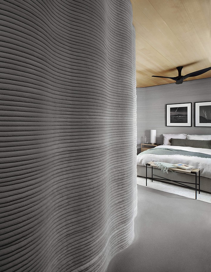 Lake|Flato Architects, doğadan ilham alan biyofilik tasarım ve form unsurlarını, Vulcan inşaat sistemini kullanarak 3D olarak basılan evde kullanılan kavisli duvarlara entegre ediyor. Mimarlara göre, bu duvarların kavisli profilleri, topluluğa daha fazla yapısal stabilite kazandırıyor. Ayrıca bu kavisli profiller, iç tasarımın bir parçası olarak daha yumuşak sirkülasyon yolları yaratıyor. Lake|Flato Architects'in Ortak Ortağı Lewis McNeel, bir basın açıklamasında, "3D baskılı duvar tasarımı ve onun doğasında bulunan biyofilik kalitesi, köklü ve zamansız bir doğal sığınak duygusunu çağrıştıran düzenli, ancak katı olmayan bir model aktarıyor" diyor.