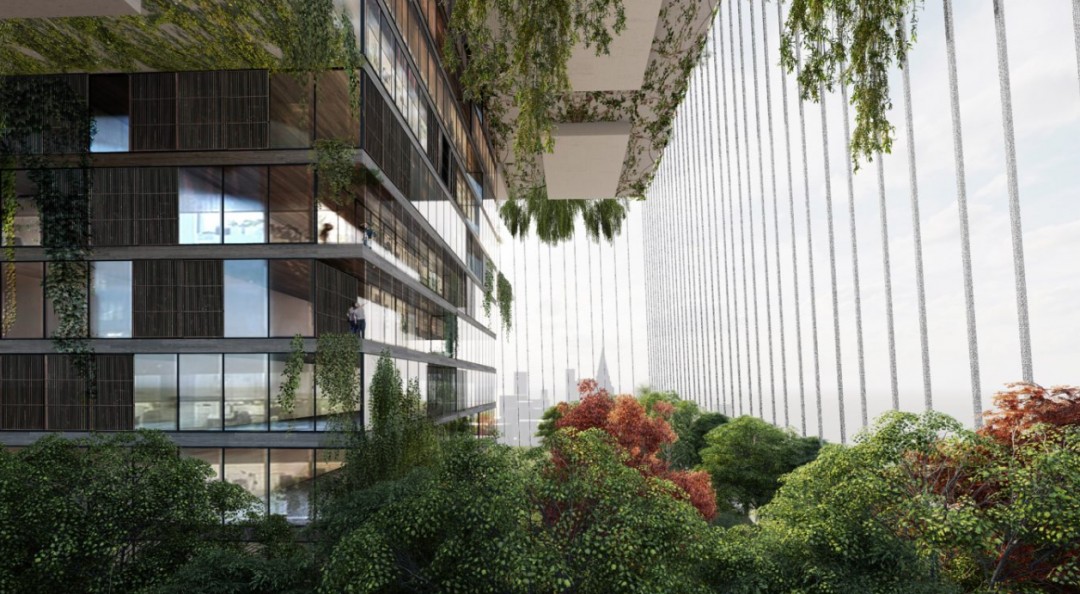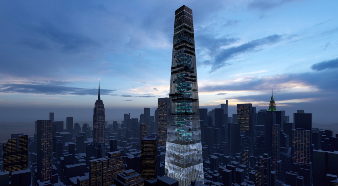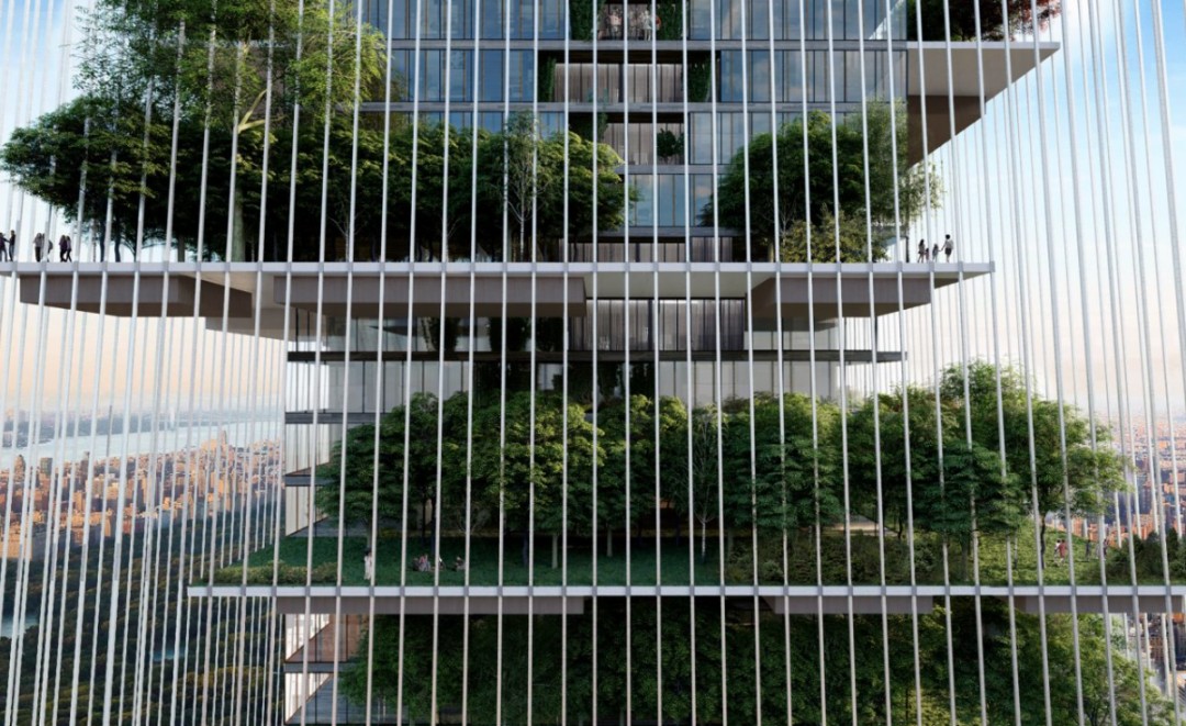 Lissoni Casal Ribeiro, New York'ta 80 x 130 metrelik bir alanda bir 'Skyline' hayal ediyor. Merkezi bir ana çekirdek ana işlevleri barındırır ve bir dış çelik kablo perdesi tarafından desteklenen geniş bir asma bahçe ile çevrilidir. Bu kablolar hem bir yapı hem de bir cephe görevi görüyor.