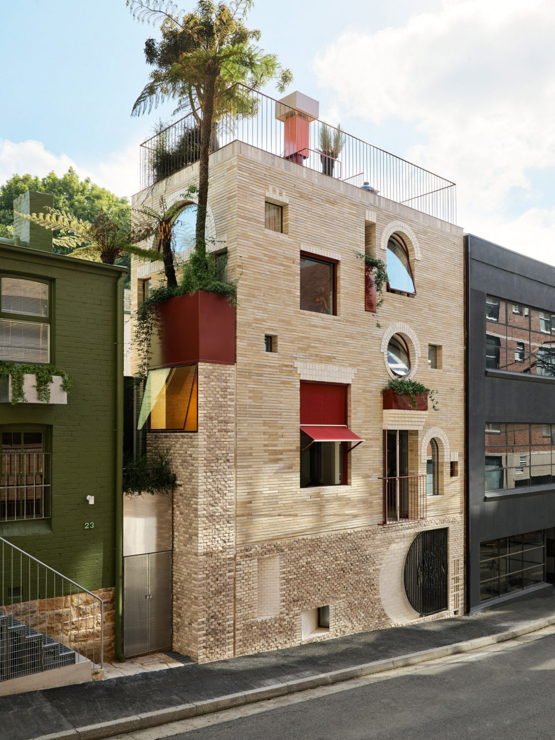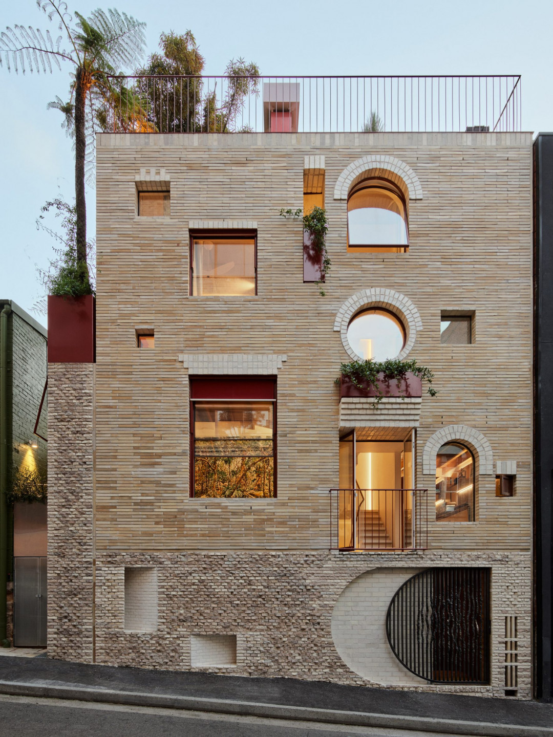 Avustralyalı stüdyo SJB'nin Sidney'deki küçük bir araziye eklediği 19 Waterloo Street'in cephesini, pencerelerin kademeli dizilişi ve tuğlaların desenli bölümleri oluşturuyor. İçinde bir dükkan ve müstakil bir daire de bulunan bina, SJB tarafından Surry Hills banliyösündeki kompakt arazide bulunan hasarlı bir yapının yerini almak üzere tasarlandı. Yapı, Dezeen Awards 2023'ün Urban House kategorisinde kısa listeye kaldı.