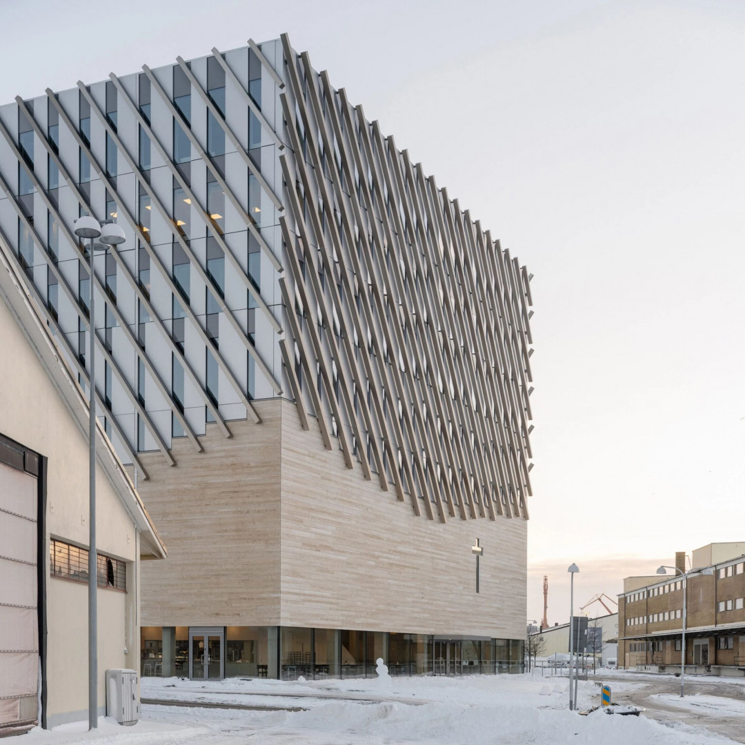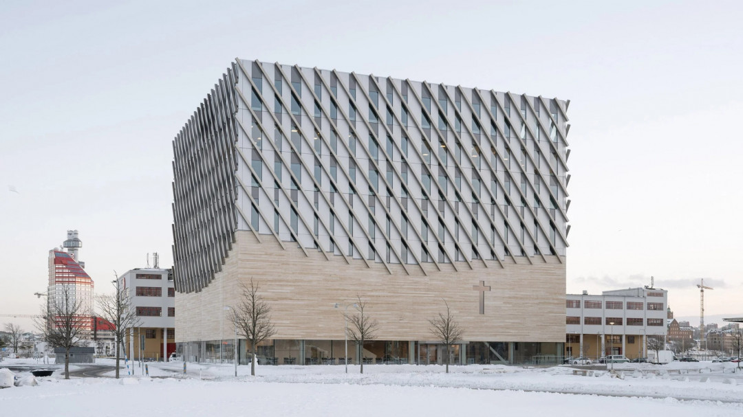 İsveçli mimarlık stüdyosu Elding Oscarson, Göteborg'da yer alan Frihamnskyrkan (Freeport Kilisesi) için çapraz alüminyum çubuklarla kaplanmış ve moiré etkisi yaratan küp şeklinde bir yapı tasarladı. Bu proje, Pentekostal cemaat için mevcut yapısını geride bırakan bir kilise ve topluluk merkezi olarak tasarlandı.