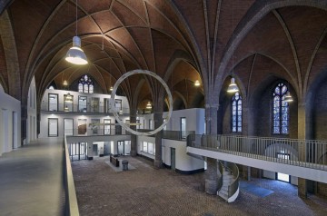 Kilisenin üç üst katında eğitim tesisleri ve çok amaçlı bir salon yer alıyor. Bu alanlar, spiral bir merdivenle aydınlatılan büyük bir avlu etrafında düzenlenmiş. Üst katları desteklemek için büyük bir kiriş yapısı kullanılmış ve böylece salon altındaki alan sütunsuz hale getirilmiş.