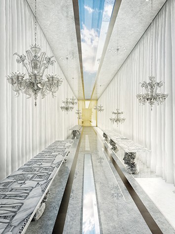 Siyah cephe üzerindeki her mekan üç farklı boyutta boşluklar içerirken, beyaz cephe ise tek bir modül içerecek şekilde tasarlanmış. Böylece mekanların cepheyle kurduğu ilişki dolayısıyla, cephede rastgele konumlanmış gibi gözüken fakat altında matematiği olan bir doku oluşturulmuş.