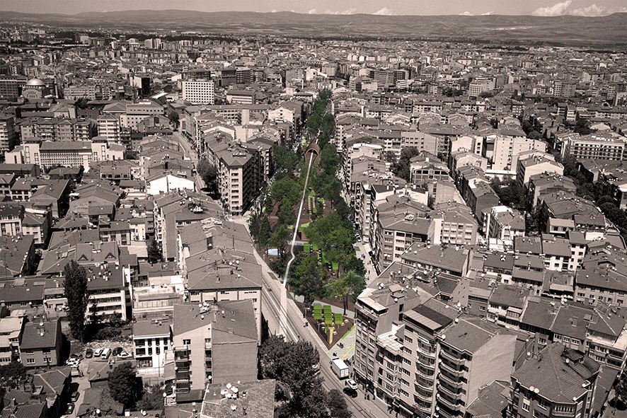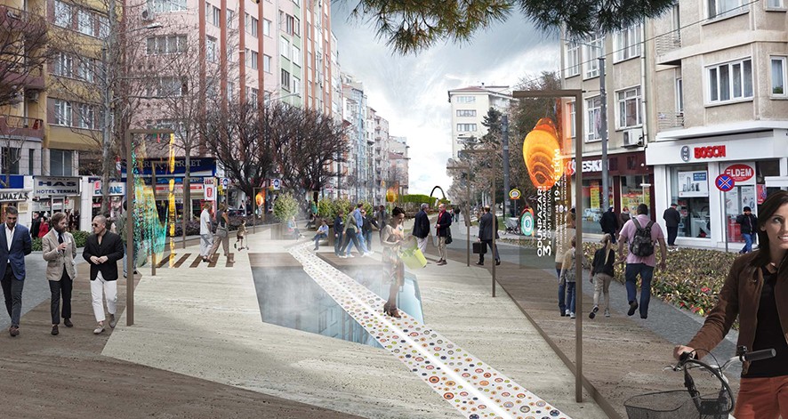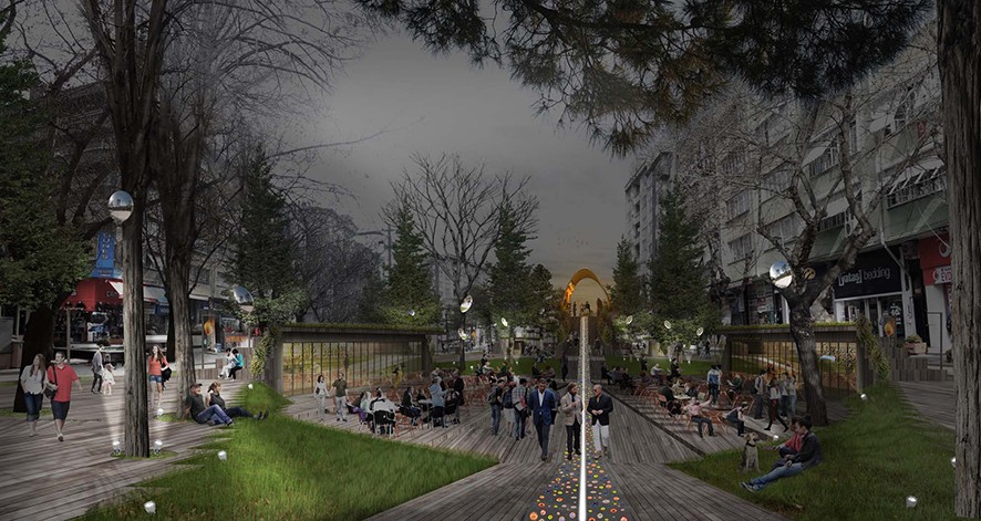 Odunpazarı’nın en önemli kentsel alanlarından biri olan Hamamyolu caddesinde tasarlanan “Hamamyolu Urban Deck”, yoğun kent dokusunun içinde var olan caddenin canlandırılmasına yönelik davetkar bir bakış açısı sağlamaktadır. Geri dönüştürülebilir ahşap kompozit kullanılarak oluşturulan peyzaj elemanlarından, su sistemlerinden ve yoğun bitki dokusundan oluşan bu ‘yeşil yaya aksı’, Odunpazarı’ndan Porsuk Nehri’ne doğru uzanan modern ve hareketli buluşma alanları yaratmaktadır.