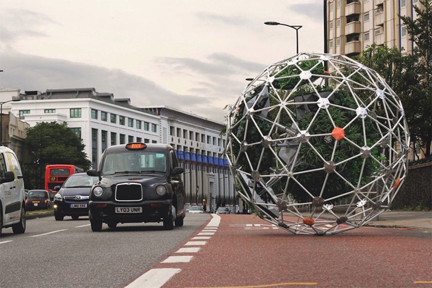Hortum machina B’nin Londra’da ilk denemeleri yapıldı. Küredeki bütün bitkiler Londra’nın yerel bitkilerinden oluşuyor ve elektriği makinaya eklenmiş güneş panellerinden elde ediyor. Ayrıca mekanizma kendi su deposuna da sahiptir. Deneysel proje, şehirlerdeki yeşil alanların artış göstermesini sağlayacak gibi görünüyor.