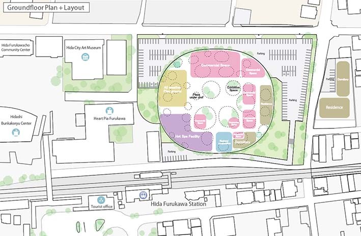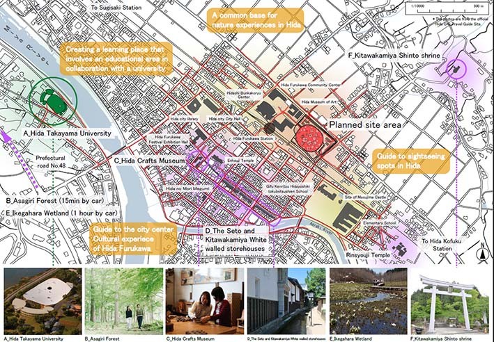 Proje, aynı zamanda turist sayısını artırmayı ve şehirdeki dolaşımı iyileştirmeyi amaçlıyor. Kümelenmiş işlevleri, Hida Şehri'ni canlandırmak, geliştirmek ve parlak geleceğini güvence altına almak için bir araya gelecek. Kültür merkezi, gelenek ve gelecek, çeşitlilik ve yakınsama, birey ve grup, doğa ve yapaylık, maruz kalma ve koruma gibi temaları bir araya getiren pop-up işlevler ve etkinliklerle canlandırılacak.