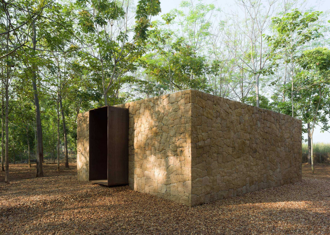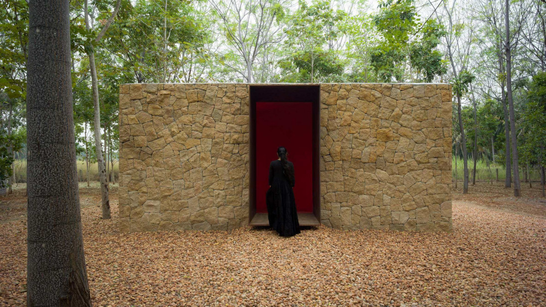 Hindistan’ın Tamil Nadu eyaletinde, yaşamı boyunca 14 hektarlık bir çiftlik alanını ormana dönüştüren gerçek bir doğa dostu için hayata geçirilen bu proje, sizi bilmem ama beni derinden etkiledi. Odağına ağaç sevgisini alan eser, 182 Design imzasıyla, ormanın içinde basit ama etkileyici bir düşünce ve yansıma alanı olarak yaratılmış. Dışta yer alan dokulu taş cephe, içte derin kırmızı betonla kontrast oluştururken, ormanın kalbini de simgeliyor.