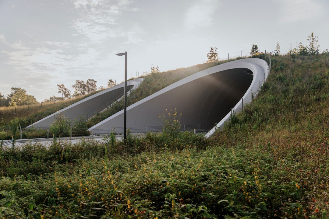 Dört tünel, gürültülü karayolunun üzerinde yükselen ve parkın kuzey ve güney yarılarını yeniden birbirine bağlayan yeni Kinder Kara Köprüsü'nü oluşturmak için toprak, bitki ve sert peyzaj katmanlarıyla örtülmüş. Bu kara köprüsünün toprak örtüsü, trafik gürültüsünü etkili bir şekilde azaltarak yaya deneyimlerini iyileştiriyor.
