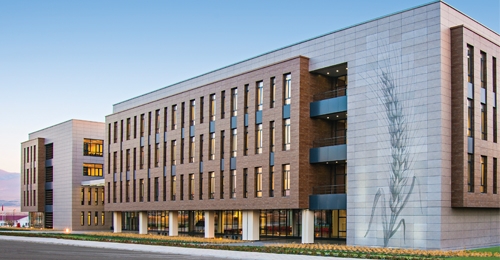 24.000 m2 kapalı inşaat alanına sahip olan yapıda fakülte bloklarının bir tarım uygulama alanı/peyzaj bandı üzerine yerleşmesi sağlanarak, teorik ve pratik eğitimin birlikteliği hedeflenmiştir.