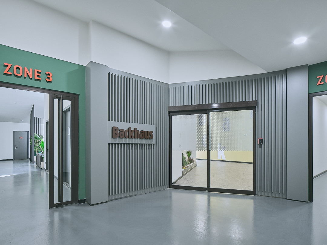 Yapının cephesinde kullanılan endüstriyel malzemeler, Ayazağa'da artan konut ve ofis dokusu içerisinde dikkat çekmesini sağlarken, aynı zamanda tesisin sanayi kimliğini öne çıkarıyor. Sanayi kökenini kaybetmeden bölgenin dönüşümüne uyum sağlayan Backhaus Üretim ve Yönetim Tesisi, endüstriyel kimliği görünür kılan bir mimari unsur görevi üstleniyor.