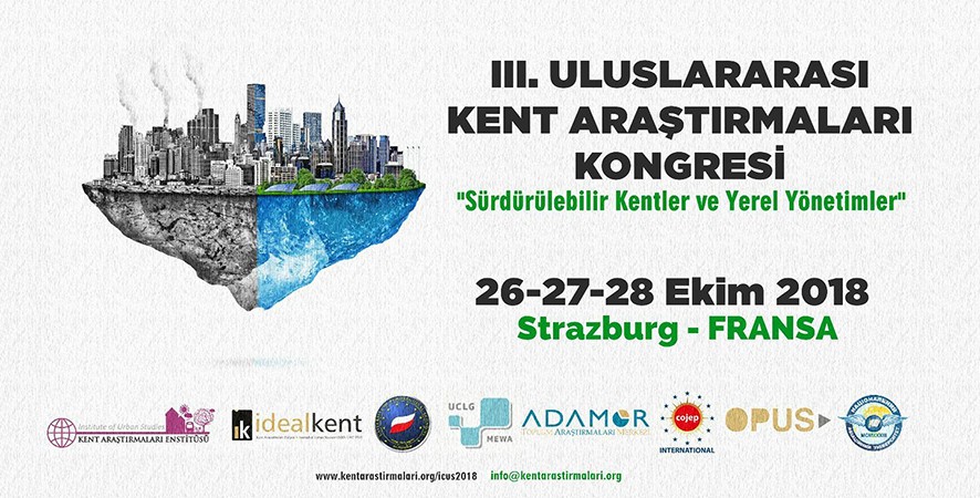 III.Uluslararası Kent Araştırmaları Kongresi (3rd International Conference of Urban Studies): Sürdürülebilir Kentler ve Yerel Yönetimler 26-28 Ekim 2018 tarihinde Strazbourg / Fransa'da düzenlenecek.