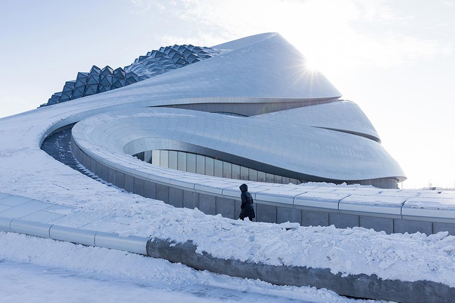 Harbin Opera Binası, zamanla rüzgar ve suyun şekillendirdiği keskin buz formasyonuyla Harbin kent silüetine yeni bir dönüm noktası yaşatmıştır. Pekin merkezli MAD Architects tarafından tasarlanan bina, kuzey kentinin vahşi doğasını ve soğuk iklimini ruhuna yansıtarak organik bir heykel gözlemine çıkarıyor.