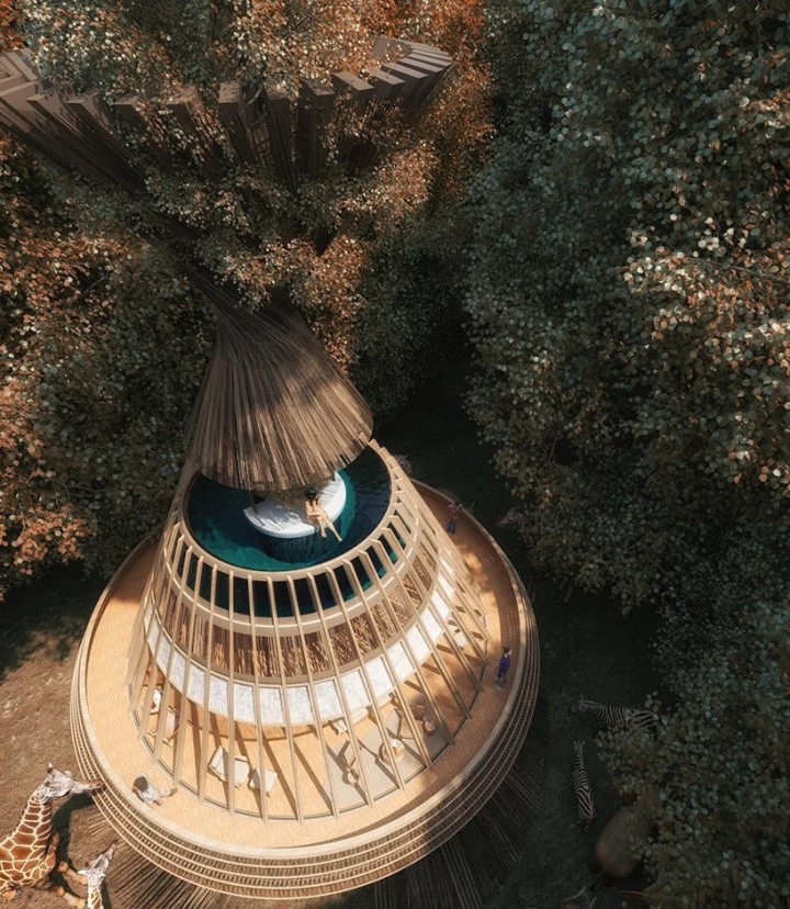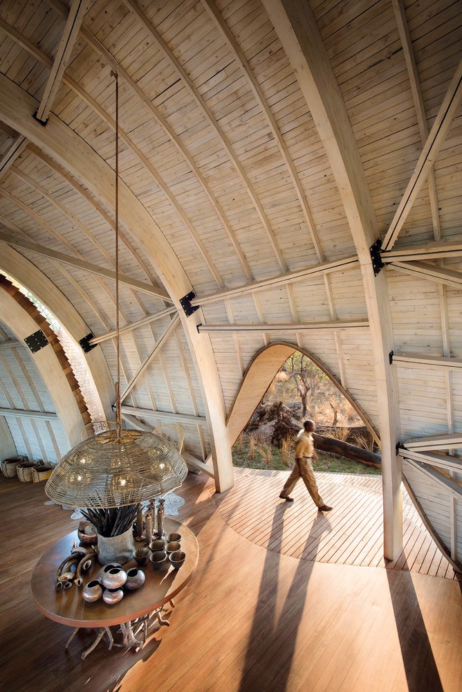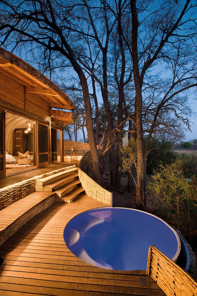 Nicholas Plewman Architects tarafından tasarlanan Botswana, Okavango Deltası’nın kalbinde 24 yataklı lüks bir butik otel. Okavango Deltası, Afrika kıtasının yedi doğal harikasından biri olarak kabul ediliyor. Orijinal orman evi on yedi yıl önce inşa edildiği için, bir dünya mirası alanı ilan edildi ve sonuç olarak yapıya uygulama aşamasında zorlu kısıtlamalar getirildi.
