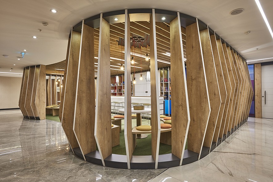 Kullanıcı isteklerinin de etkili olduğu renk seçimleriyle departmanlar arasında çeşitlilik oluşturulurken, çalışma ekibini yoğun iş temposu içerisinde dinamik tutacak canlı renkler, sıcak malzemeler ve iç peyzaj ile tasarımda dinamik ve modern bir stil yakalanmış. Yönetici odalarında ise kullanılan halı, mermer, doğal ahşap ve metal gibi malzemeler ile yakalanan, daha yalın bir çizgi olmuş. 170 kişilik yemekhane ve açık teras ayrıca masa tenisi ve langırt ile çalışanların sosyalleşip günlük stresini atabilecekleri sosyal alanlar ile beraber 100 kişilik eğitim ve seminer odası ve yurtdışından gelen misafirler için düşünülen süit odalarını 3. katta konumlandıran EDDA Architecture, sunduğu yenilikçi ve yaratıcı çözümler ile geleneksel kalıpların ötesine geçen bir çalışma ortamı sağlıyor.