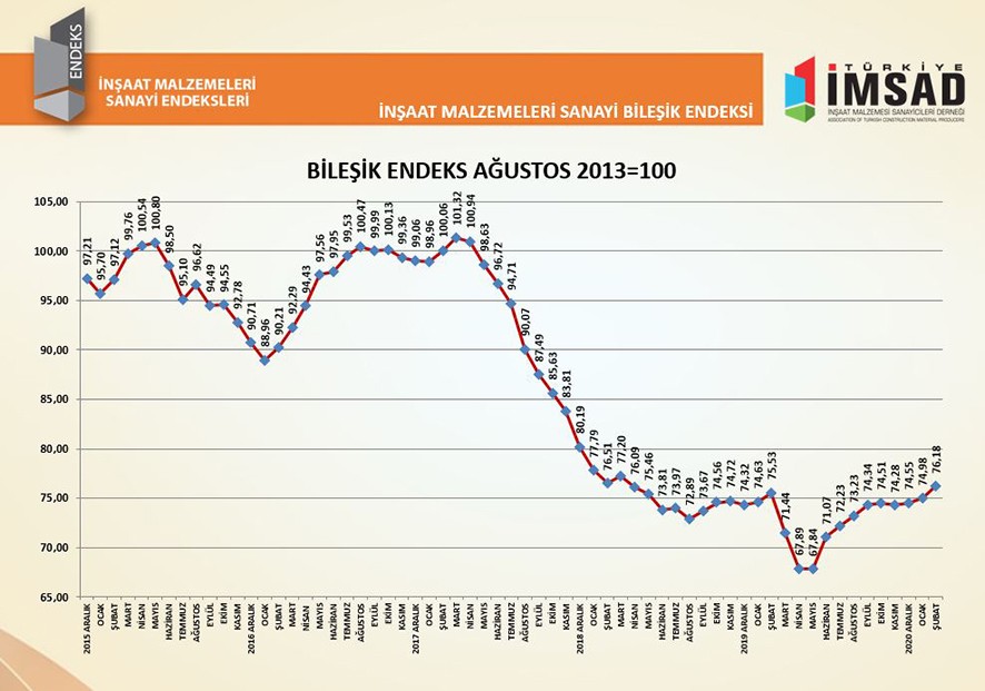 Türkiye İMSAD İnşaat Malzemeleri Sanayi Bileşik Endeksi şubat ayı sonuçlarına göre, pandemi kısıtlamalarına ve sert mevsim koşullarına rağmen inşaat malzemeleri sanayisinde faaliyetlerdeki yükselişle birlikte erken bir geri dönüş yaşandı. Aşılamada olumlu gelişmelerin yanı sıra, yurt içi ve yurt dışı pazarlarda talebin kuvvetlenmesi sonucu beklentilerde de son dönemlerin en yüksek iyileşmesi gerçekleşti.