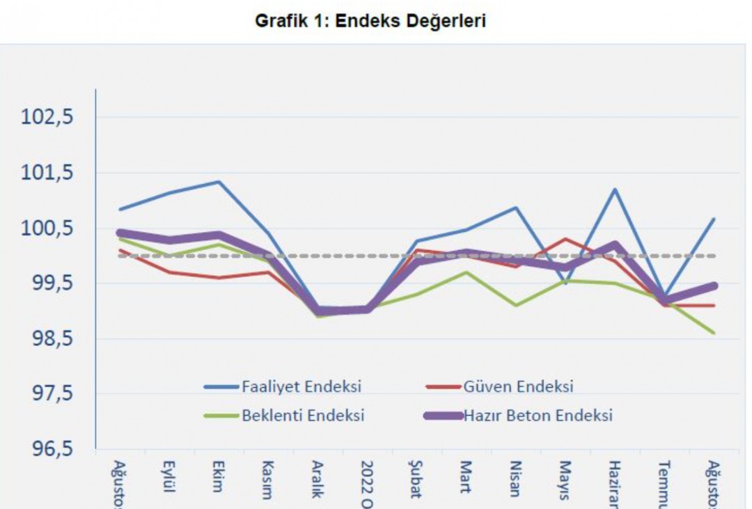 Türkiye Hazır Beton Birliği (THBB), her ay merakla beklenen inşaat ve bununla bağlantılı imalat ve hizmet sektörlerindeki mevcut durum ile beklenen gelişmeleri gösteren “Hazır Beton Endeksi” 2022 Ağustos Ayı Raporu’nu açıkladı. Rapora göre, faaliyette ağustosta yukarı yönlü bir hareket olmasına rağmen yılın başından bu yana inşaatın hâlen yönünü tayin edemediği görülmektedir. 2 ay üst üste faaliyette yükselişin görülmemesi sektörün ne yönde hareket edeceğinin belli olmadığının net bir göstergesidir.