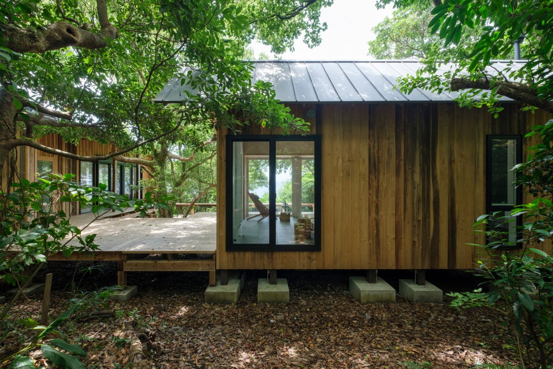 Binalarda yağ açısından diğer bölgelerdeki sedirlerden daha zengin olan yerel Yakushima sediri kullanılıyor. Bu da onu dayanıklı yapar ve Yakushima'nın yağmurlu, nemli ikliminde dış mekanda kullanıma uygun hale getiriyor. Site planı dış yollarla birbirine bağlanan birkaç kabinden oluşur. Bazı kabinler oturma odası, mutfak ve yemek alanı gibi ortak alanları paylaşırken, diğerleri özel konaklama için kullanılır.