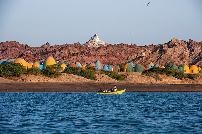 Hürmüz, bir diğer adı ile “Gökkuşağı Adası; manzaraları, tarihi ve renkli topografyası ile eşsiz bir limandır. Ada; Sarı, kırmızı, yeşil ve mor gibi çeşitli renklerden oluşan alüvyon oluşumları, tuzlu ve pürüzlü dağları, neon renkli kırmızı kumsalları, yemyeşil ormanı, gökkuşağı renklerindeki mağaraları ve masmavi denizi ile adayı deneyimleyenlere görsel bir şölen sunuyor. “Presence in Hormuz” projesi kapsamında tasarlanan küçük kubbeli Majara Konutları, kurgusunu bu topografyanın renklerinden alıyor. Çağdaş toprak (superadobe) tekniği kullanılarak inşa edilen küçük ölçekli kubbeler, tasarımı insan ölçeğine yaklaştırıyor. Pek çok başarılı kentsel dönüşüm projesi gibi projenin uygulanmasında halk, yerel işçi ve esnaf beraber çalışıyor.