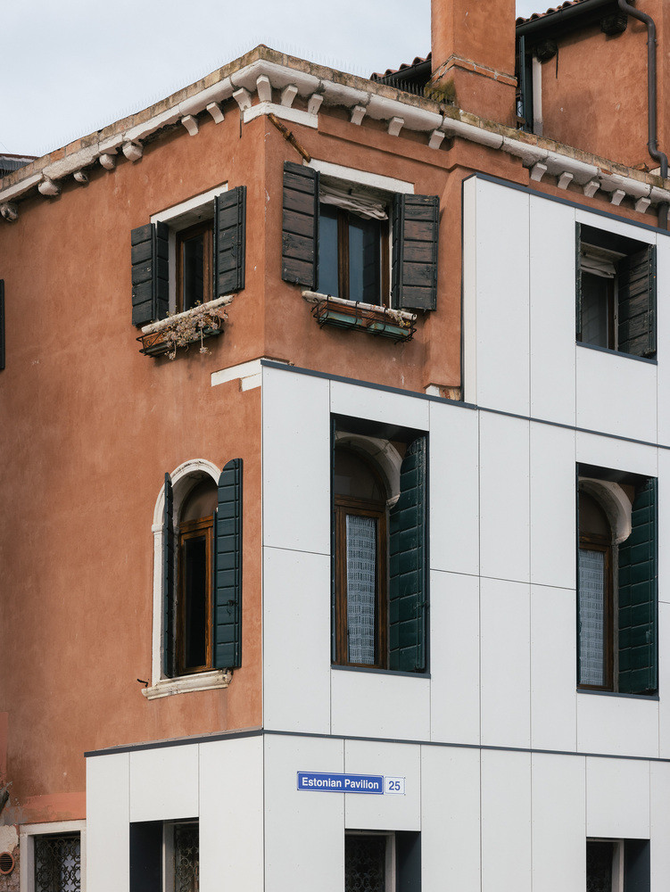 Estonya Pavyonu iki ana bölümden oluşuyor: bir dış cephe yerleştirmesi ve bir iç mekân enstalasyonu. Dış cephe müdahalesi, Venedik’in Castello bölgesinde yer alan bir palazzetto’nun cephesine, Estonya’daki tipik ısı yalıtım uygulamalarını birebir taklit eden panellerin eklenmesiyle oluşturuldu.