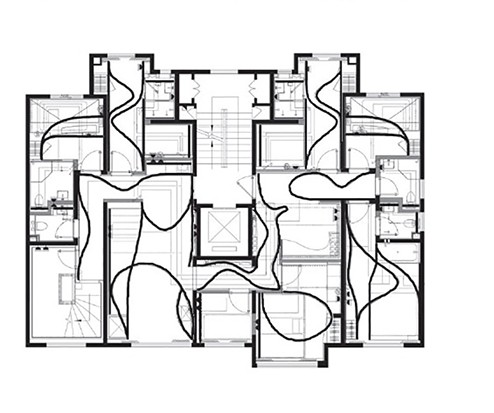 Sıvalanmış mekân kaplamalarının arkasına kalorifer sisteminin boru hatları yerleştirilmiş. Isı duvarlardan çıkarak apartmana yayılıyor. Kayak pistlerinin üzerinde geçirilen soğuk bir günün ardından konuklar samimi, rahat ve mekânsal olarak heyecan verici bir evde olmanın keyfini yaşıyorlar.