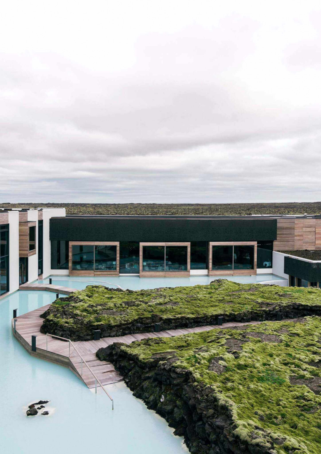 Basalt Architects’in en çok ses getiren projelerinden Blue Lagoon Spa. Proje, lav tarlalarının ve süt beyazı jeotermal suların ortasında, adeta doğanın bir parçası gibi yükseliyor. Yapının formu, çevresindeki kaya dokusuna tam tamına uyum sağlamış. Geniş cam yüzeyler, ziyaretçilerin sıcak suların buharı arasından ufka bakabilmesini sağlıyor. Burada lüks, gösterişten değil; doğayla kurulan derin bir bağdan doğuyor.